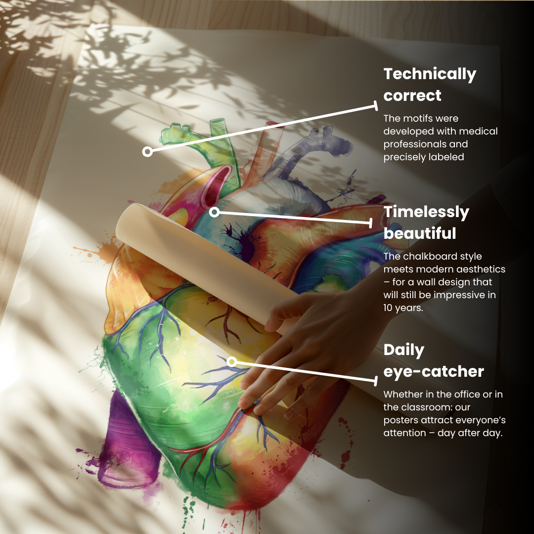 Discover the fascinating world of human anatomy with our stunning Heart Anatomy Poster in vibrant watercolor Rainbow-Style! This unique artwork showcases the heart in all its beauty and complexity.