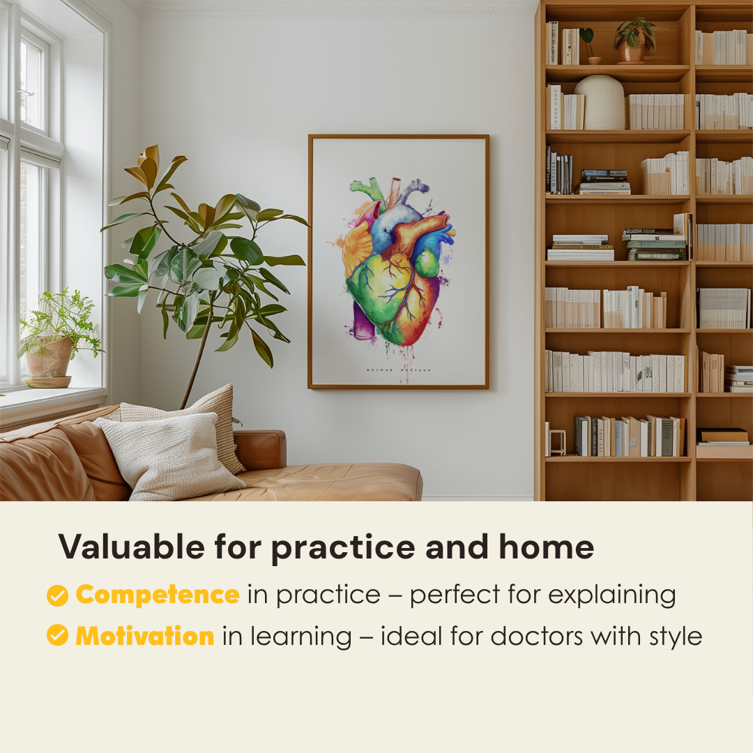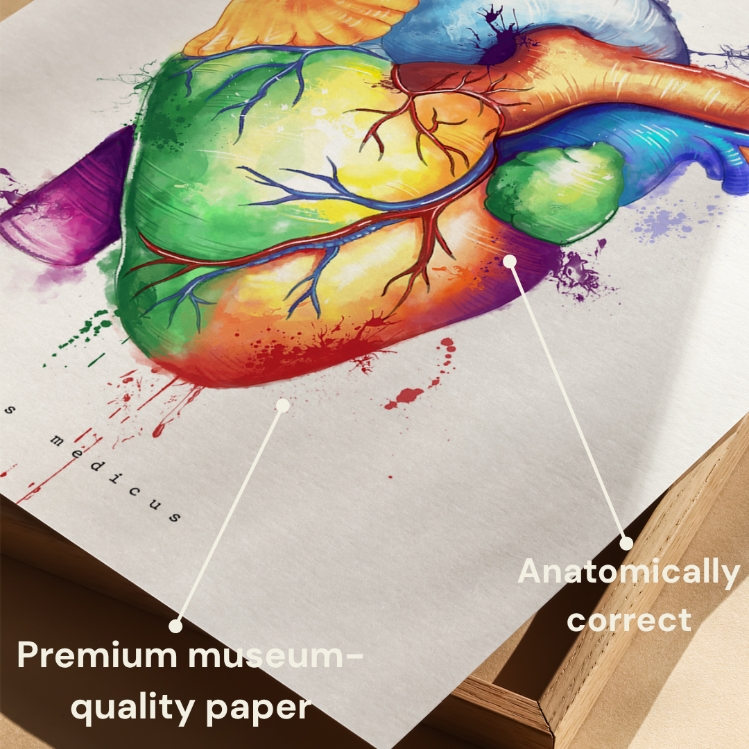 Order now and immerse yourself in the beauty of human anatomy with our Heart Anatomy Poster in vibrant watercolor Rainbow-Style!