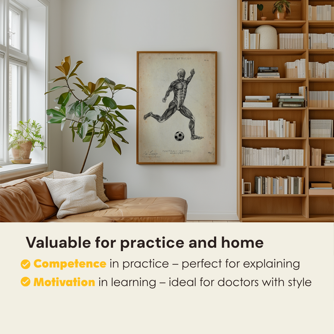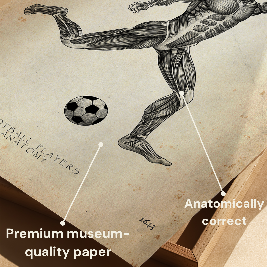 This soccer anatomy art print shows you the wonderful interplay of muscles involved in playing soccer.