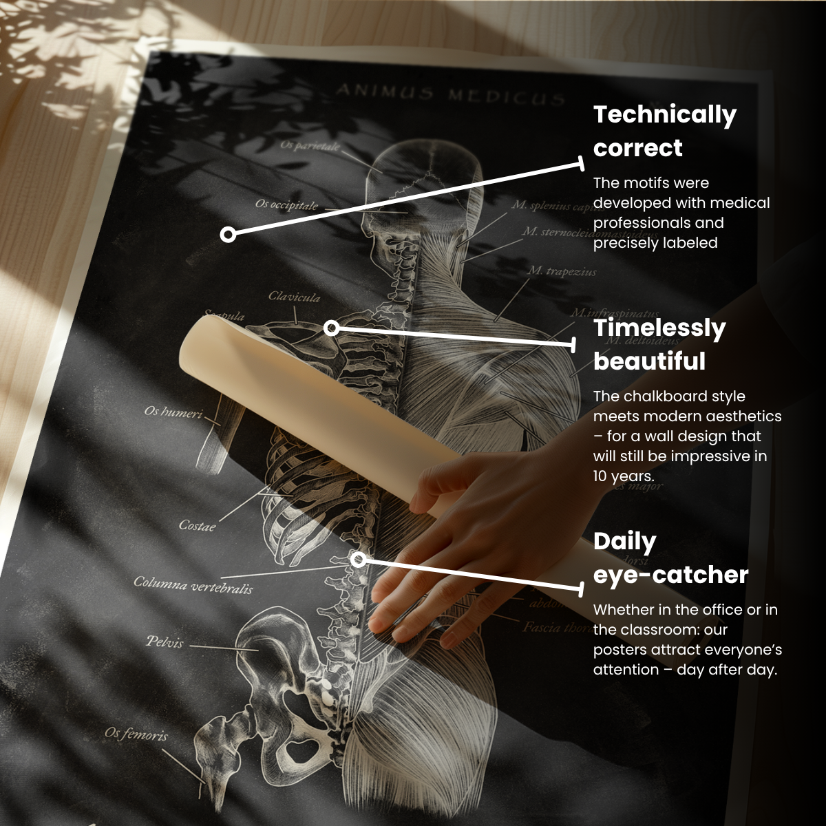 To help you easily understand and explain the structure of the back, we have designed Skeleton Back with Muscles. The motif shows the bony and muscular structure of the back in detail and also looks incredibly good...